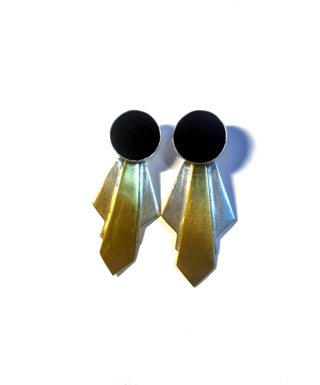Sterling silver, brass and resin art deco style earrings.