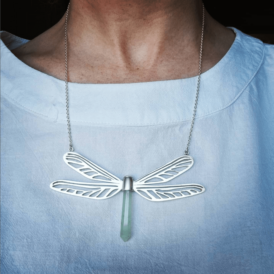 Sterling silver and aventurine dragonfly necklace.