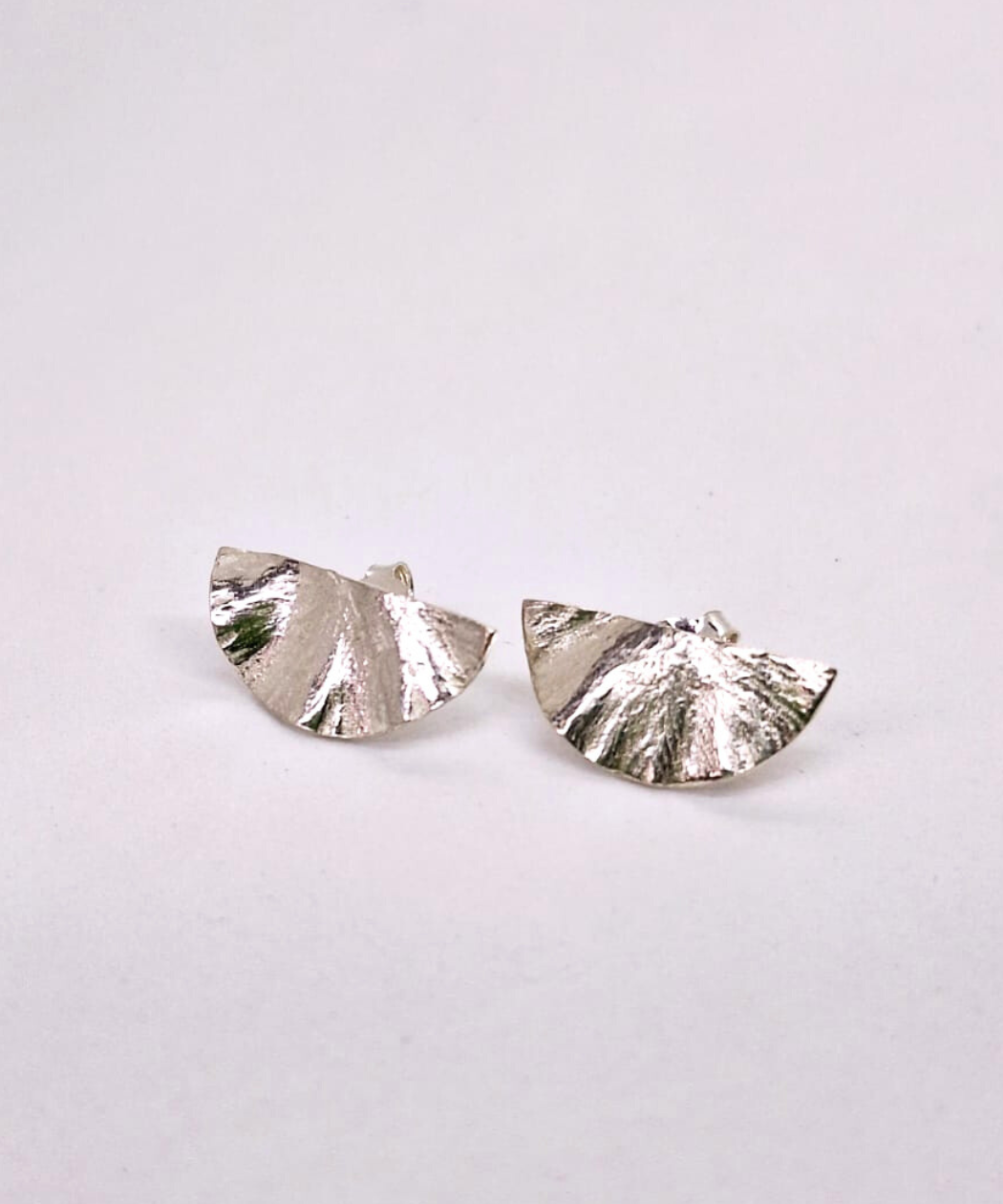 Handmade sterling silver textured half moon earrings. Part of the Astronomy Collection.
